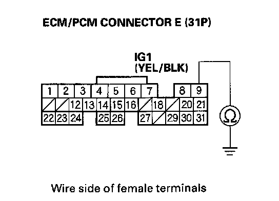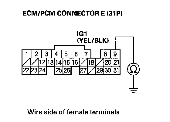 25. Check for continuity between ECM/PCM connector terminal E9 and body ground.