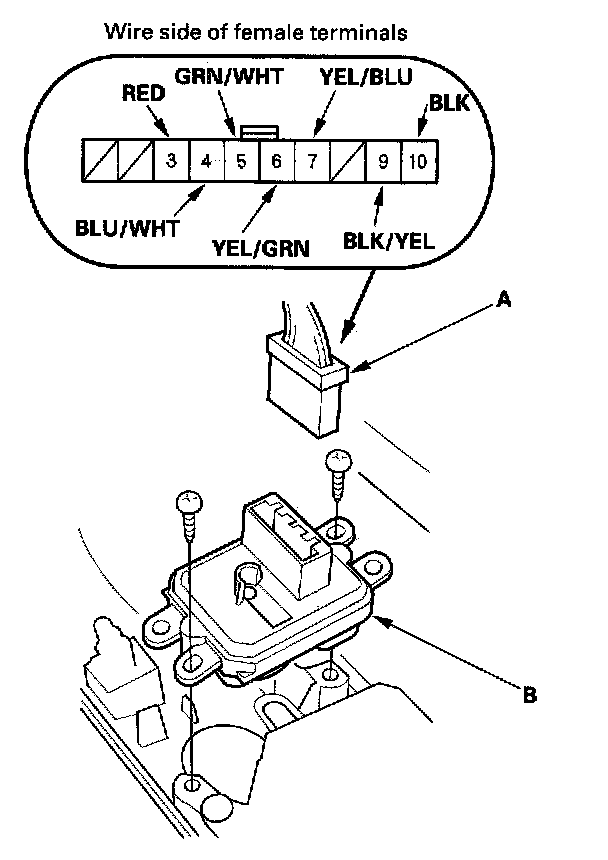 - If the mirror does not tilt down (or does not swing left), check for an open in the GRN/WHT (or BLU/WHT) wire between the left mirror and the 10P connector. If the wire is OK, check the left mirror actuator.