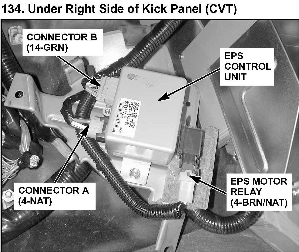 134. Under Right Side of Kick Panel (CVT):