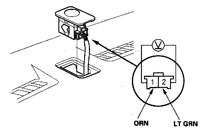 Sunlight Sensor TestTurn the ignition switch ON (II). Measure the voltage between the terminals with the (+) probe on the No. 1 terminal and the (-) probe on the No. 2 terminal with the 2P connector connected. The voltage reading will not change under the light of a flashlight or a fluorescent lamp. Voltage should be: