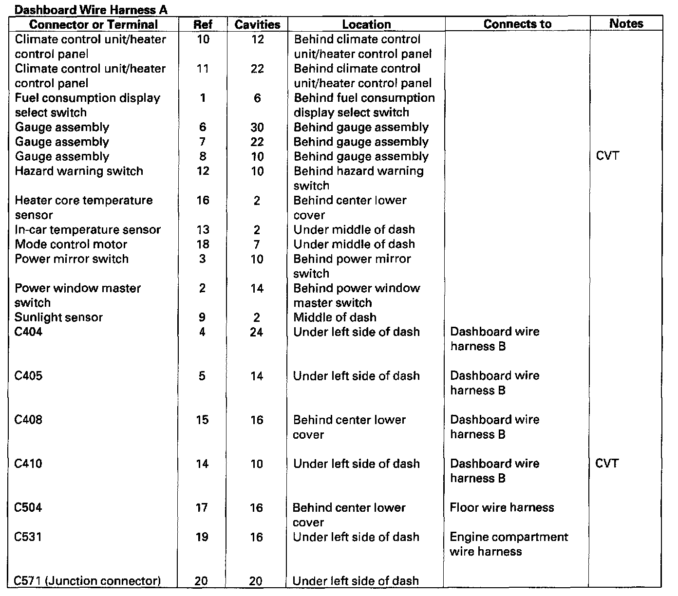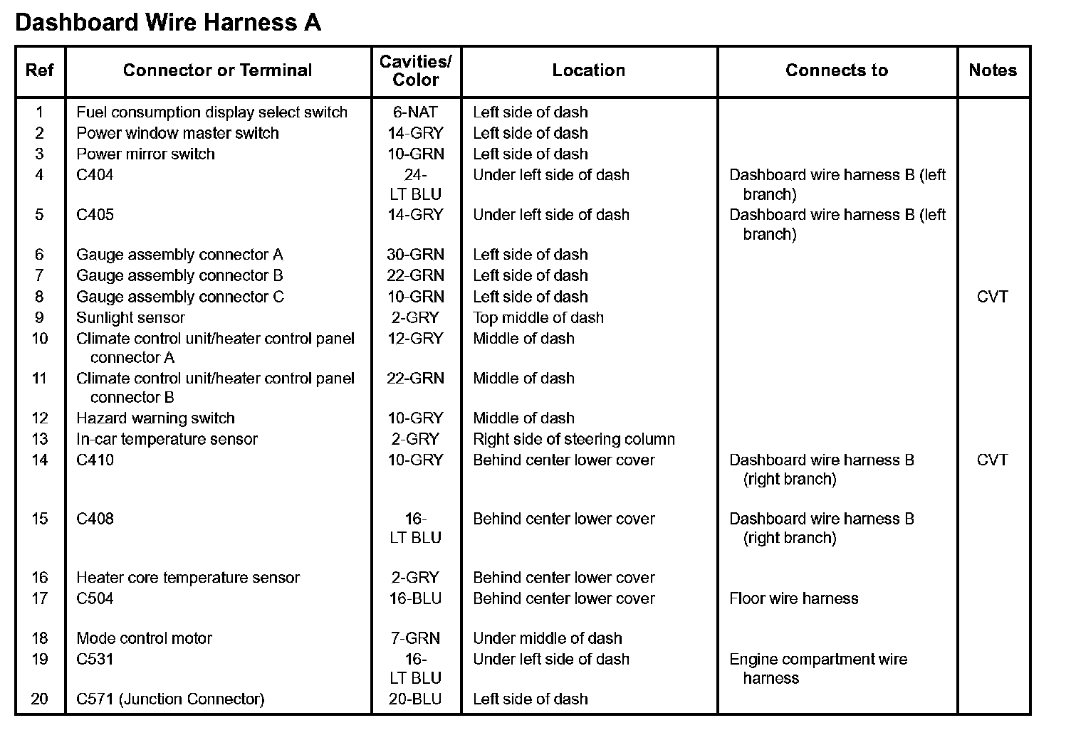 Dashboard Wire Harness A: