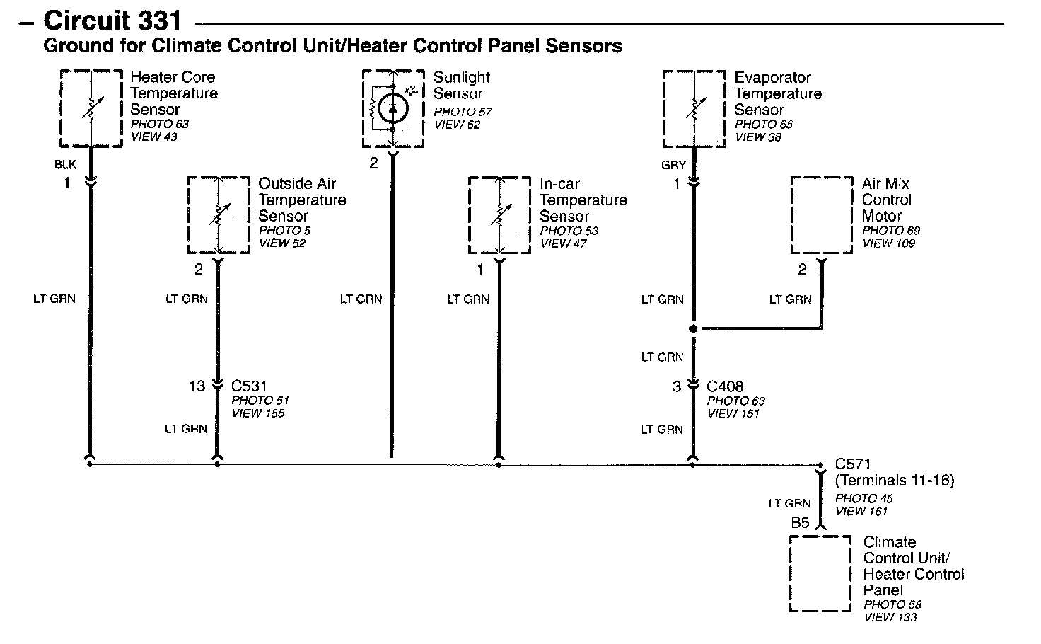 Circuit 331 - Ground For Climate Control Unit/Heater Control Panel Sensors Image 15-2b: