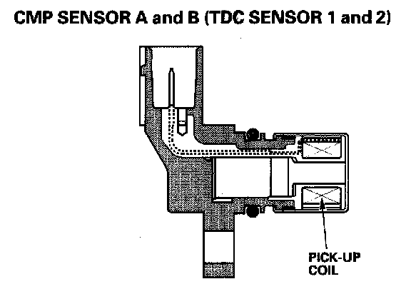 The CMPA (TDC 1) and CMPB (TDC 2) sensors detect the position of the No.1 cylinder as a reference for sequential fuel injection to each cylinder. The CKP sensor detects engine speed and determines ignition timing and timing for fuel injection of each cylinder.