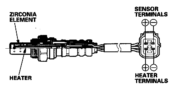 The third HO2S detects the oxygen content in the exhaust gas downstream of the NOX Adsorptive Three Way Catalytic Converter (NOX Adsorptive TWC) and sends signals to the ECM which varies the duration of fuel injection accordingly. To stabilize its output, the sensor has an internal heater. The third HO2S is installed behind the NOX Adsorptive TWC.