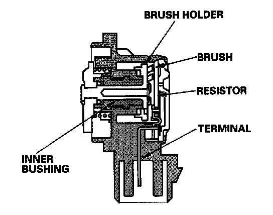 The TP sensor is a potentiometer connected to the throttle valve shaft. As the throttle position changes, the sensor varies the signal voltage to the ECM. The TP sensor is not replaceable apart from the throttle body.