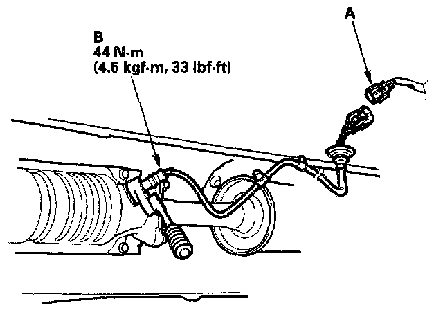 1. Disconnect the third HO2S 4P connector (A), and remove the third HO2S (B).