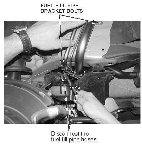 4. Disconnect the fuel fill pipe hoses from the fuel fill pipe.
