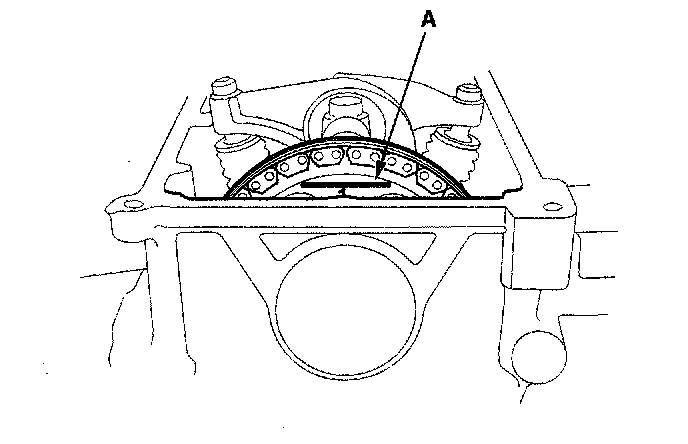 8. Rotate the crankshaft 240° clockwise (camshaft sprocket turn 120°). The second TDC mark (A) should be aligned with the cylinder head surface.