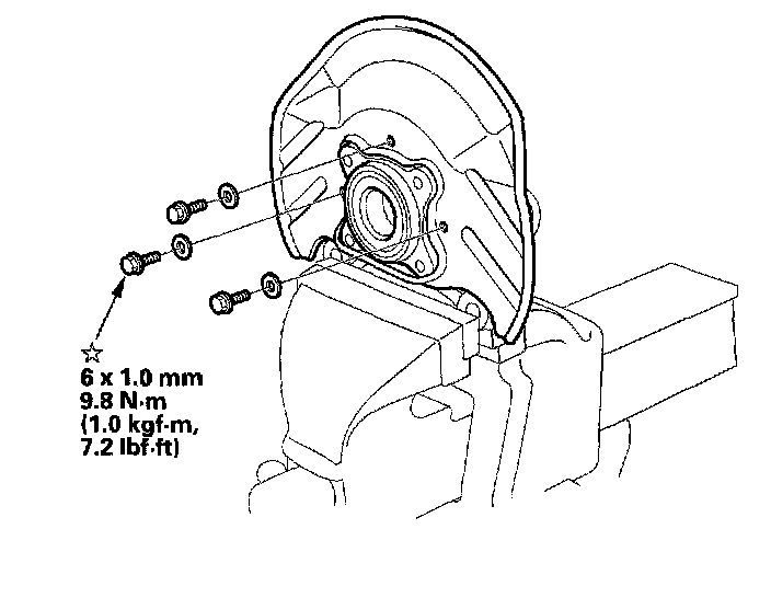 22. Install the knuckle/hub/hub bearing unit in the reverse order of removal, and note these items: