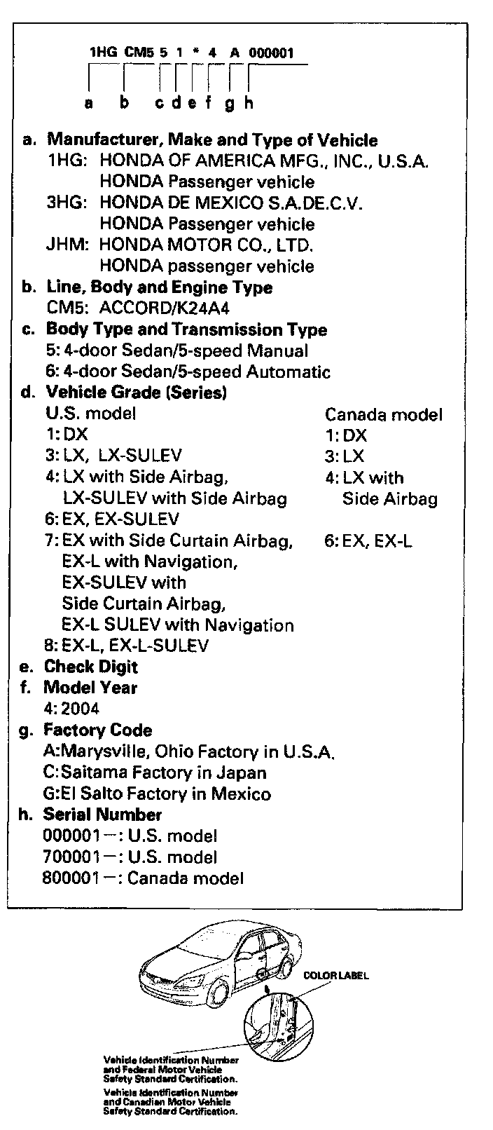 Vehicle Identification Number - 4 Door:
