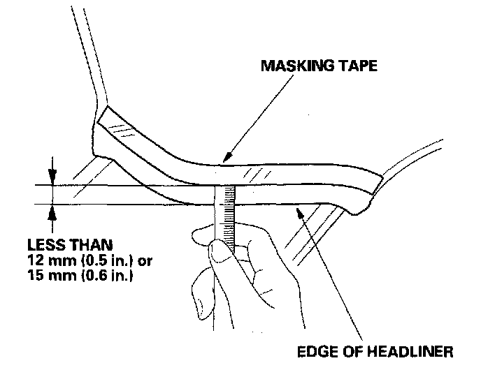 Checking and Adjusting the Headliner/Pillar Trim OverlapTo prevent the side curtain airbag from accidentally deploying and damaged the pillar trim, the overlap between the headliner and pillar trim must be less then 15 mm. To check the overlap, do this: