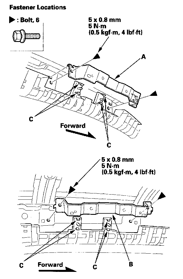 - Any fasteners (B) or clip bases (C) which have come off the headliner