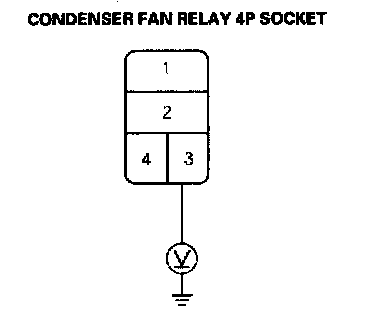 4. Measure the voltage between the No.3 terminal of the condenser fan relay 4P socket and body ground.