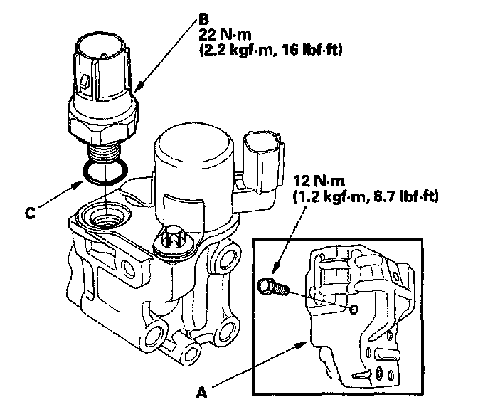 4. Install the switch in the reverse order of removal with a new O-ring (C).