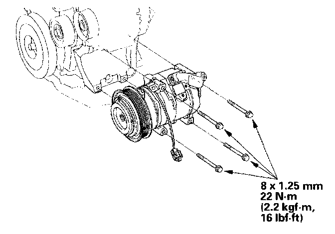 9. Install the compressor in the reverse order of removal, and note these items: