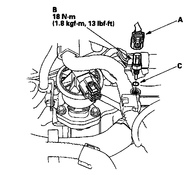 4. Install the sensor in the reverse order of removal with a new O-ring (C).