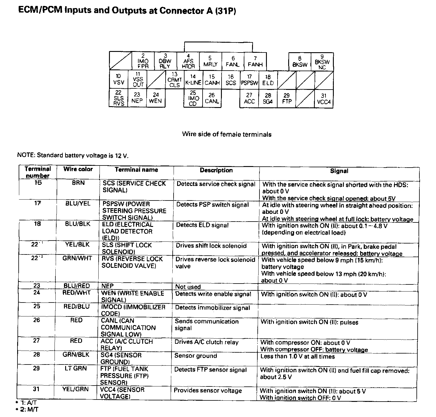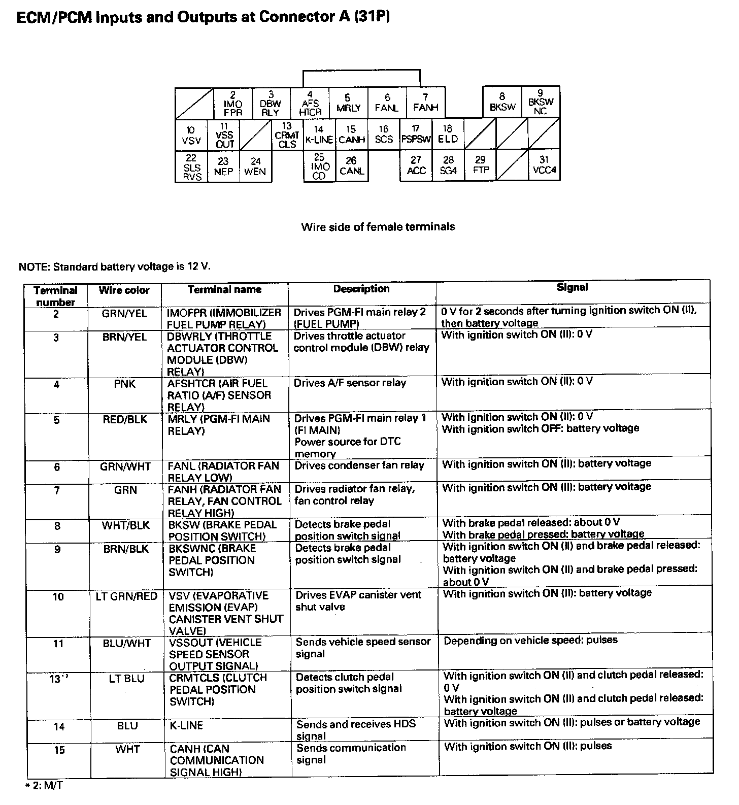 ECM/PCM Inputs And Outputs At Connector A (31P):