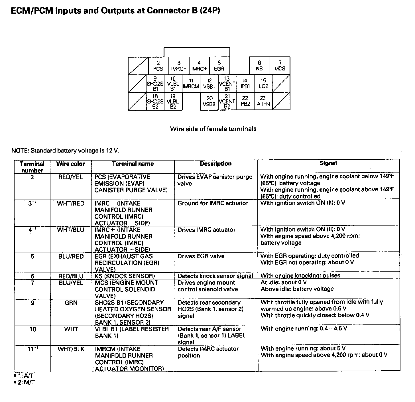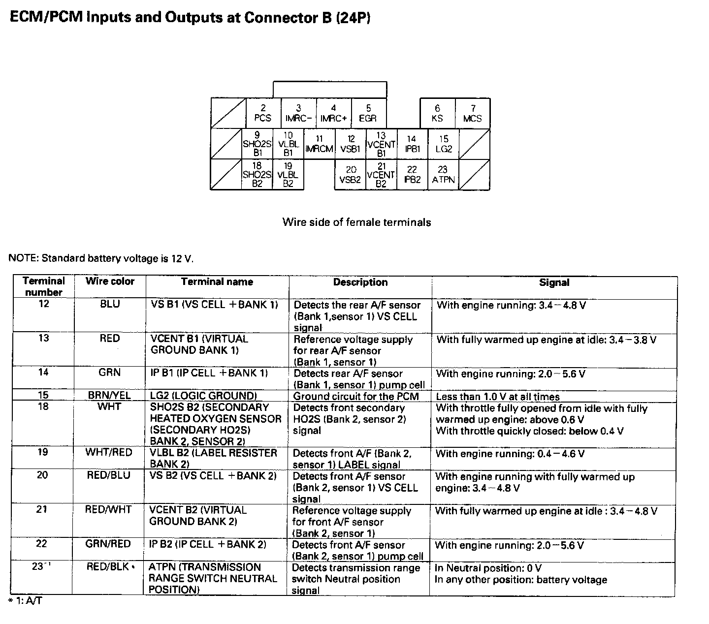 ECM/PCM Inputs And Outputs At Connector B (24P):