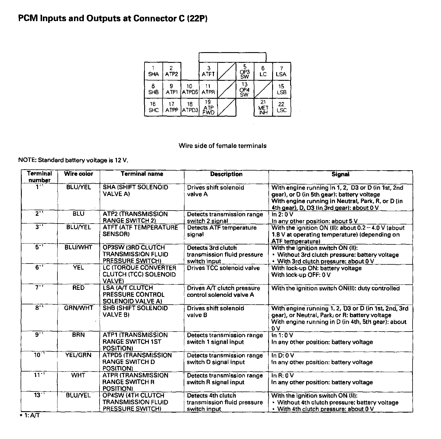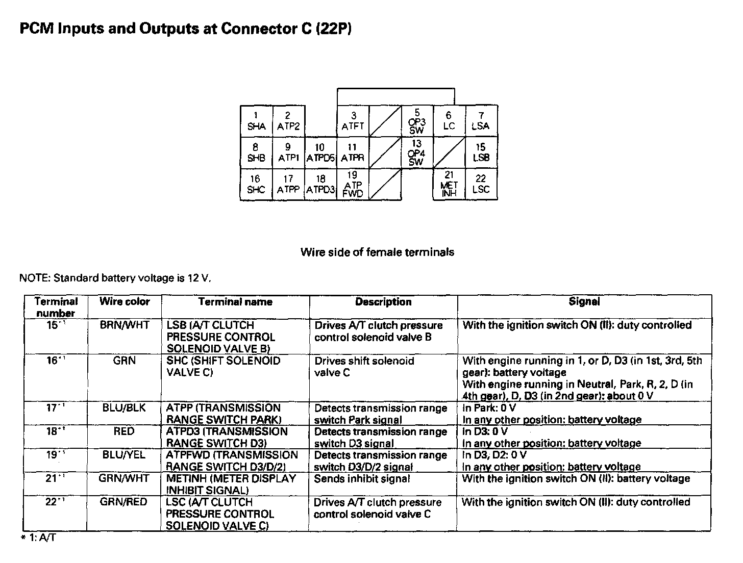 PCM Inputs And Outputs At Connector C (22P):