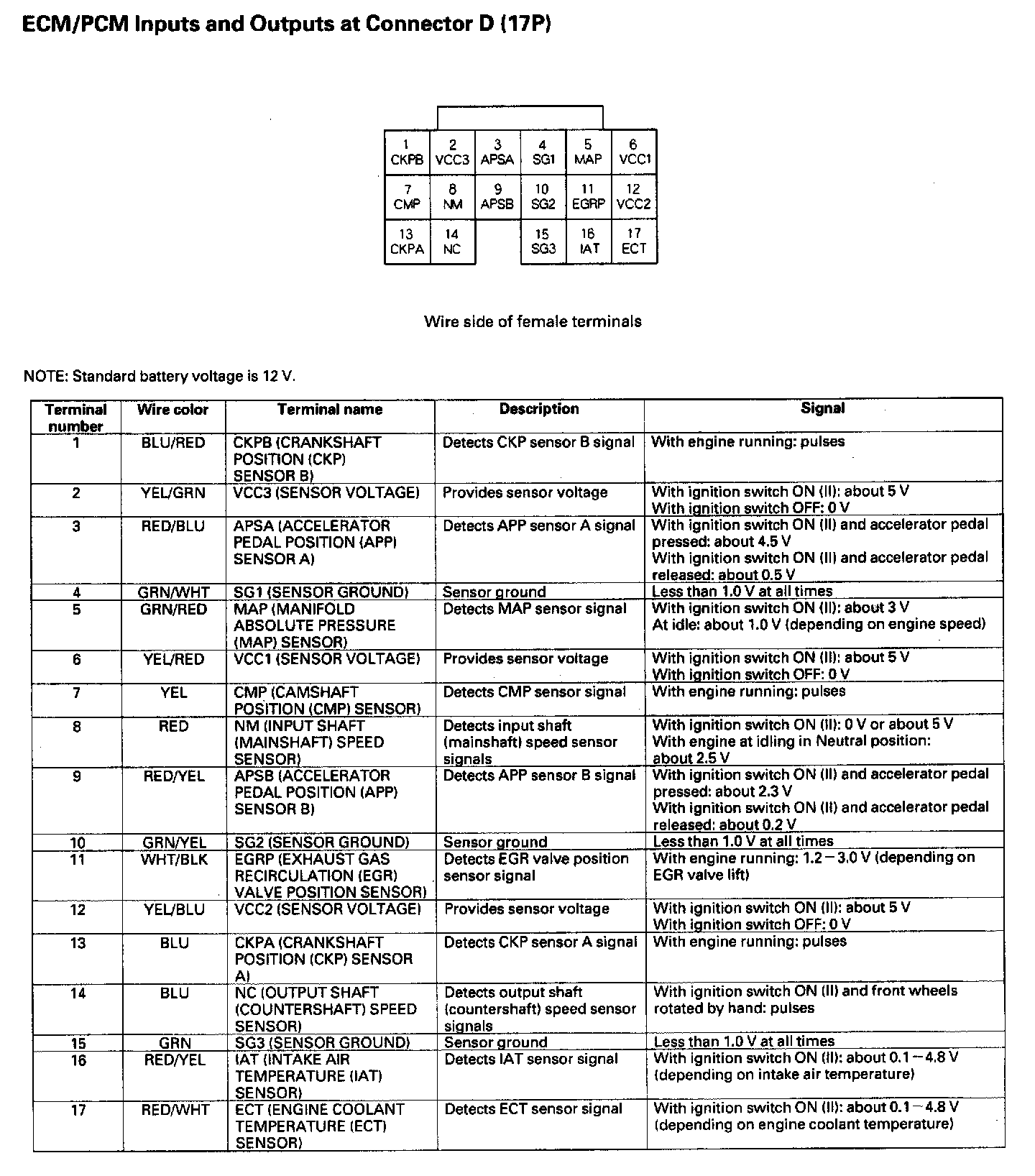 ECM/PCM Inputs And Outputs At Connector D (17P):