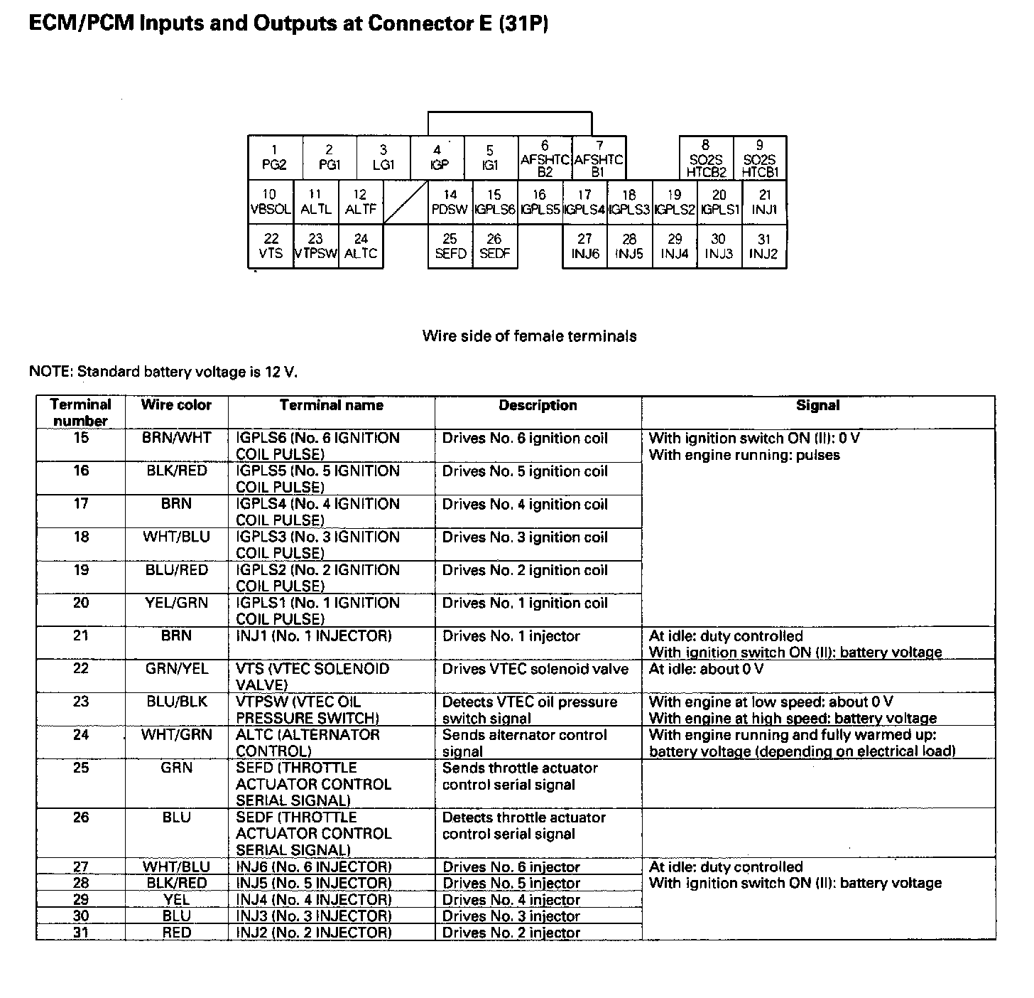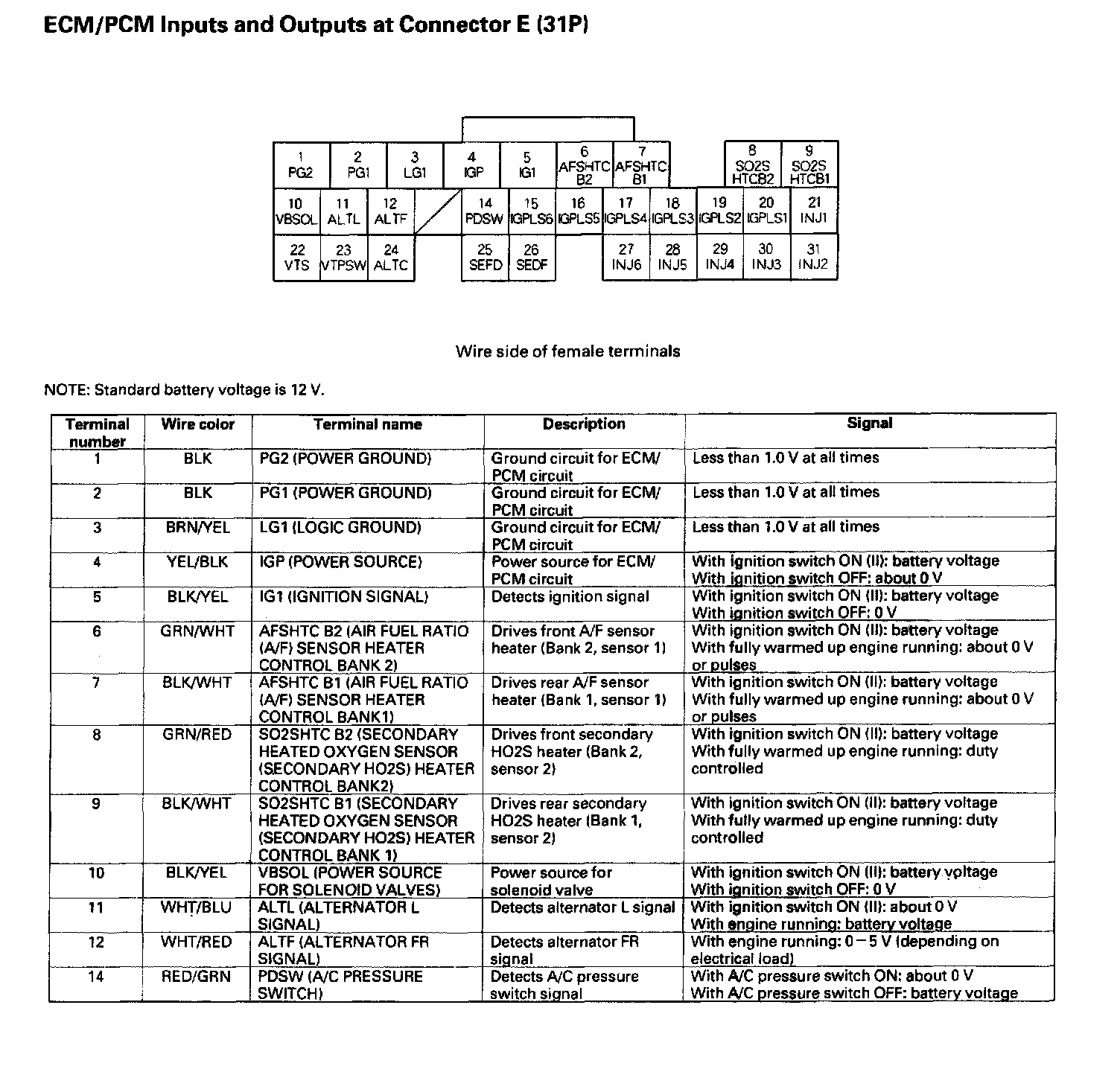 ECM/PCM Inputs And Outputs At Connector E (31P):