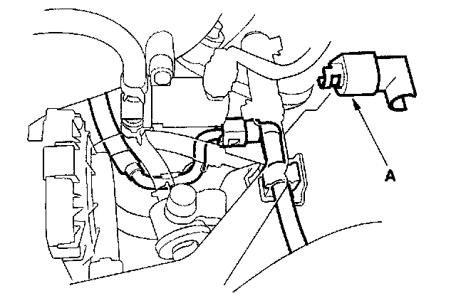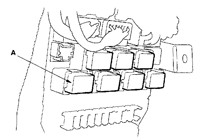 2. Remove the left kick panel, then remove PGM-FI main relay 2 (FUEL PUMP) (A) from the under-dash fuse/relay box.