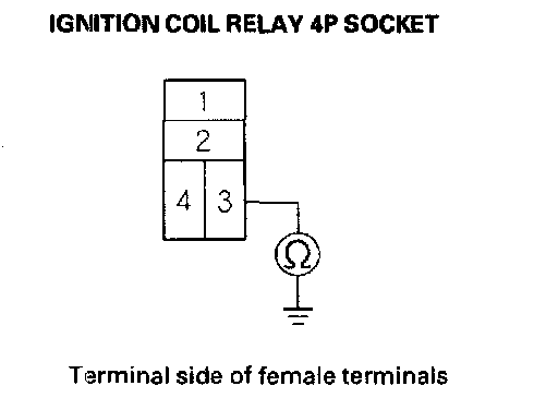 5. Check for continuity between ignition coil relay 4P socket terminal No.3 and body ground.