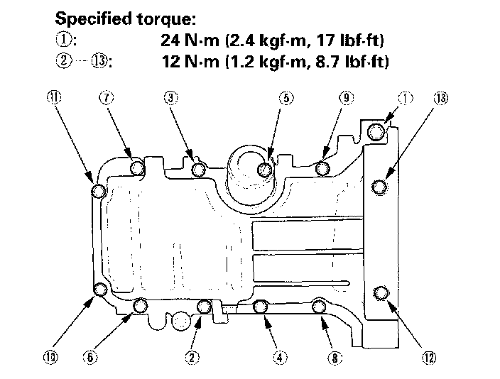Installation1. Remove old liquid gasket from the oil pan mating surfaces, bolts and bolt holes.