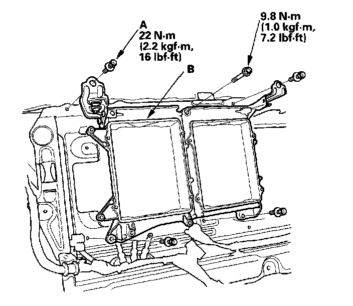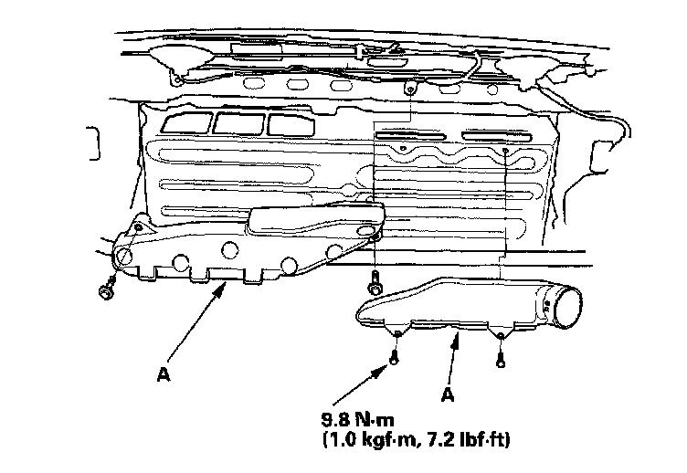 6. Remove the bolts (A) and PDU/DC-DC converter heatsink air duct (B).