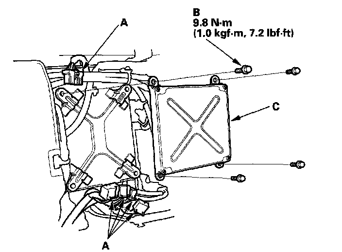 3. Disconnect the MCM connectors (A).