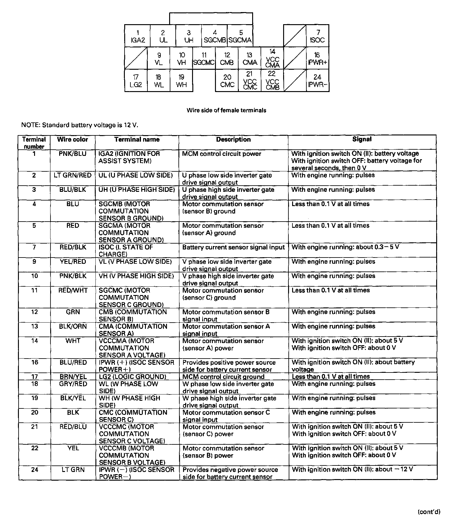 MCM Inputs and Outputs at Connector E (22P)