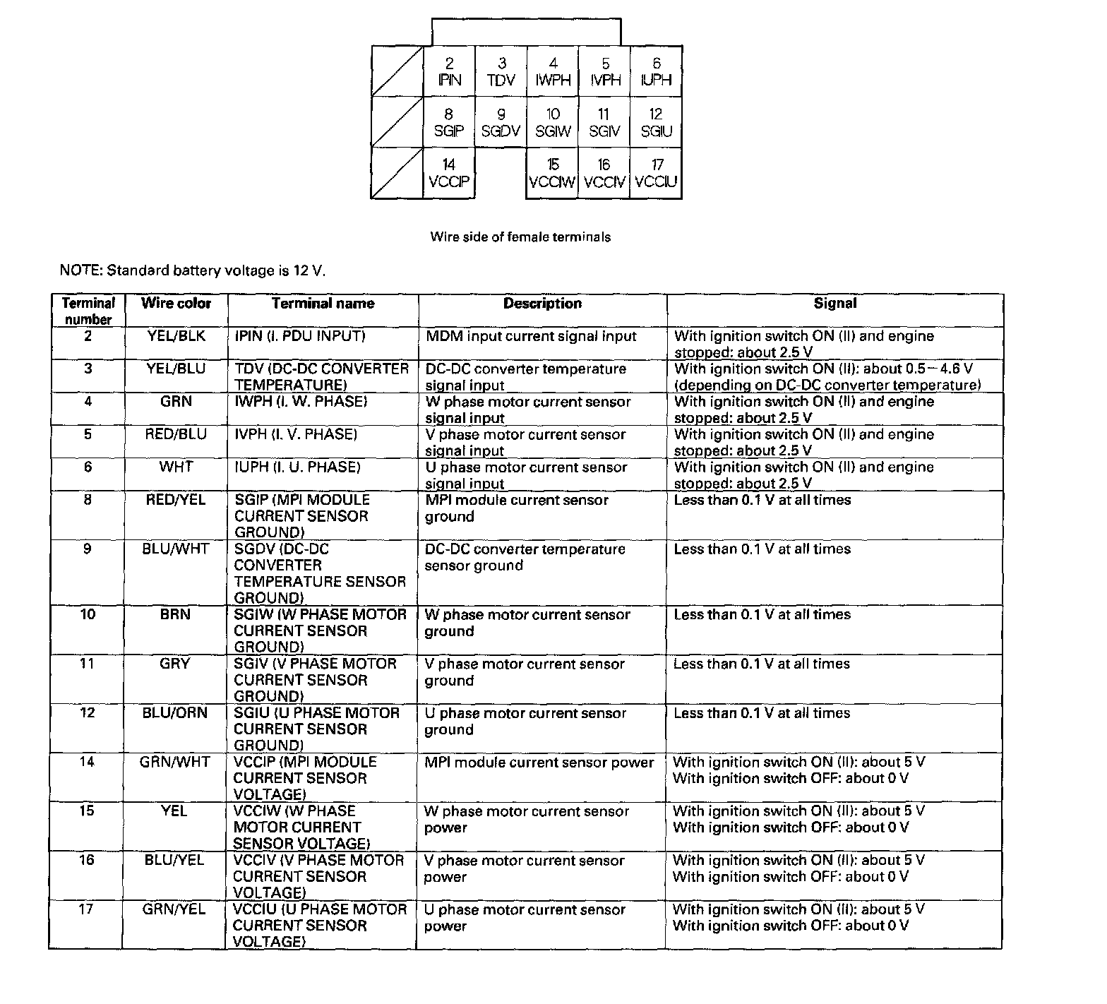 MCM Inputs and Outputs at Connector C (17P)