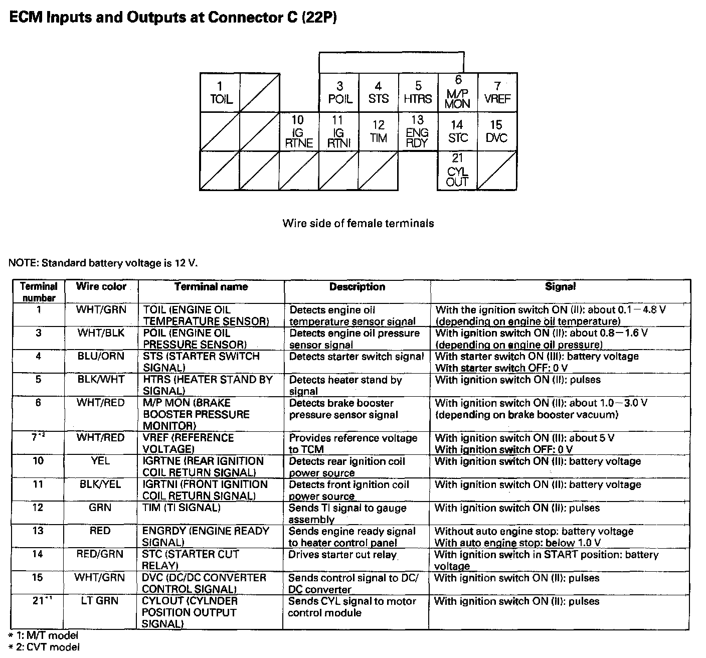 ECM Inputs And Outputs At Connector C (22P):