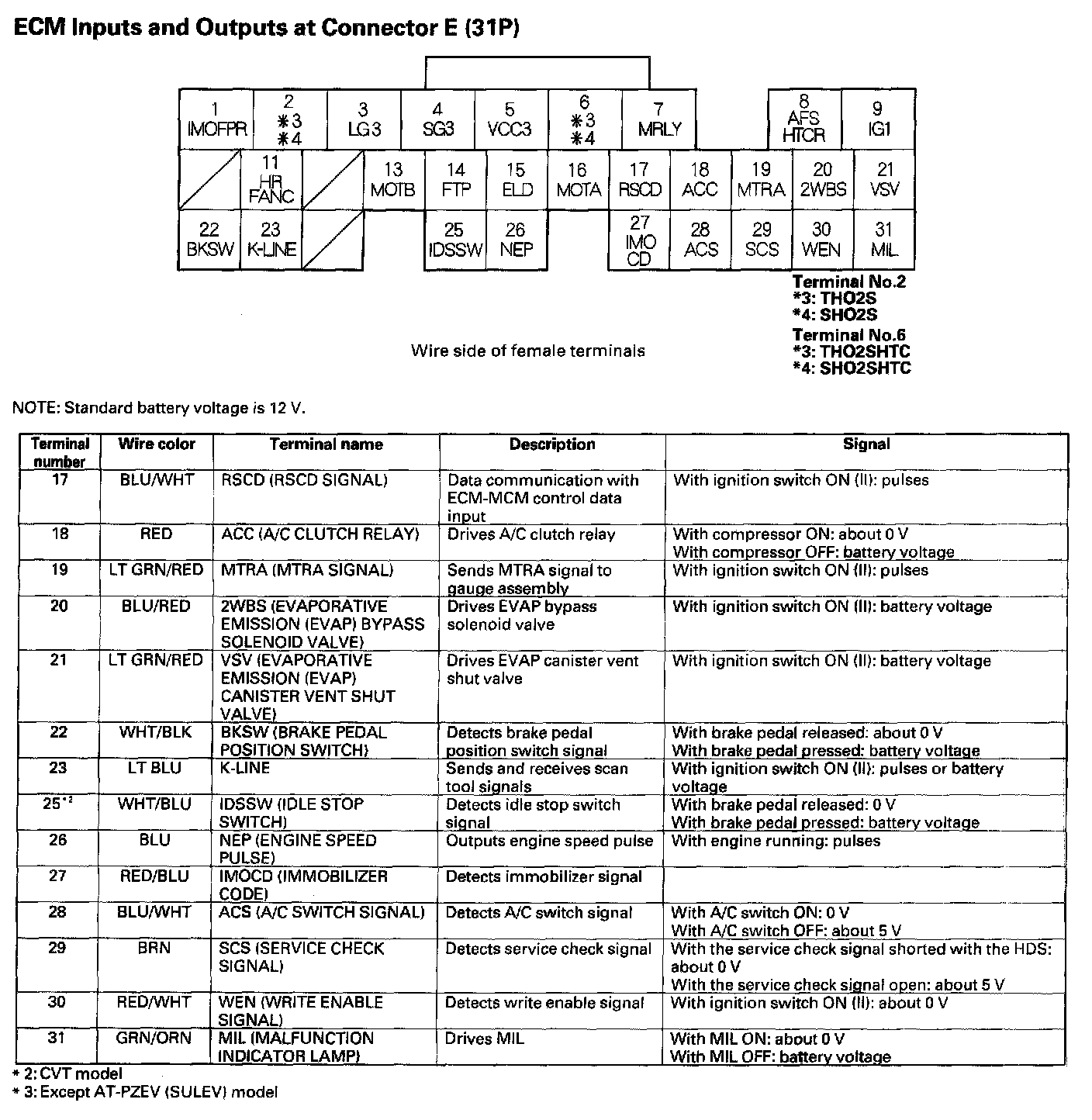 ECM Inputs And Outputs At Connector A (31P) Part 2: