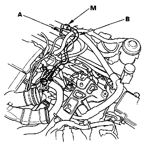 - When connecting or disconnecting the fuel feed hose fuel tank vapor signal tube (H), fuel tank vapor recirculation tube (I), purge hose (J), and quick-connect fittings (M), be careful not to bend or twist them excessively. Replace them if they are damaged.