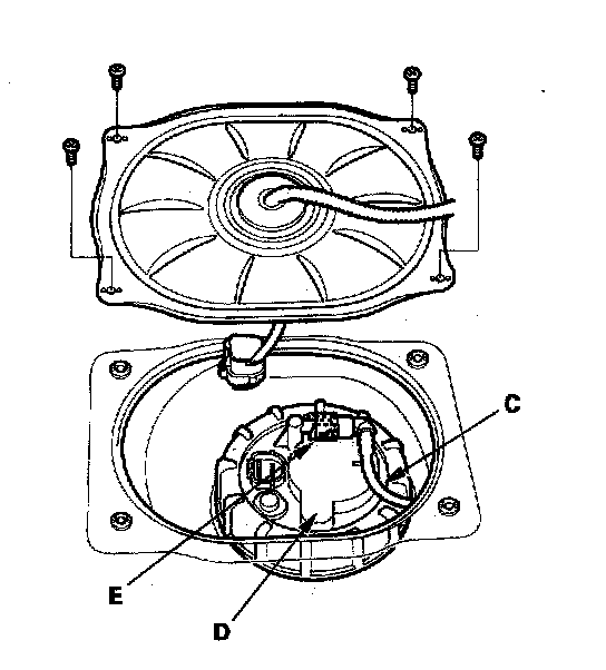 - The fuel feed hose (A), fuel tube (C), and quick-connect fittings (E) are not acid-proof; do not touch them with a shop towel used for wiping battery electrolyte. Replace them if they came into contact with electrolyte or something similar.