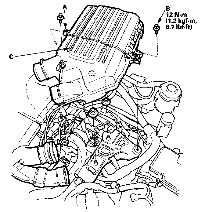 Remove the air cleaner (C).