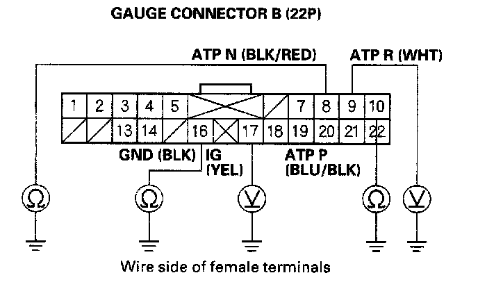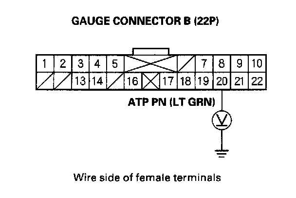 Indicator Input Test1. Remove the gauge assembly, and disconnect gauge connector B (22P).
