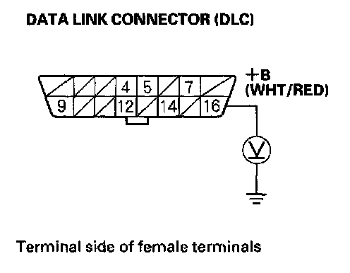 3. Measure voltage between DLC terminals No. 5 and No.16.