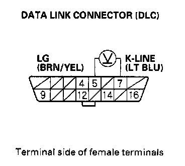 13. Measure voltage between DLC terminals No. 5 and No. 7.