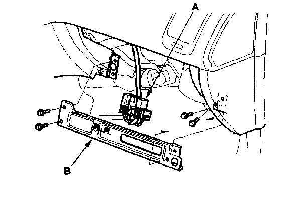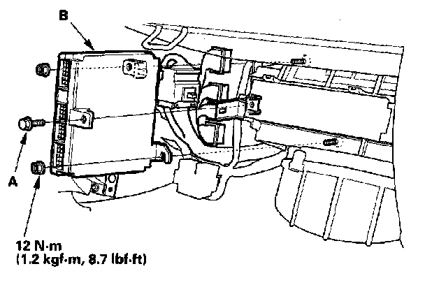 4. Remove the relays (A), then remove the bolts and the glove box frame (B).