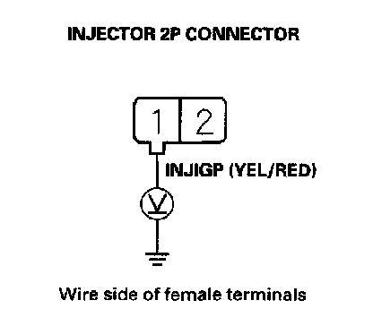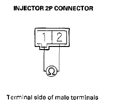 19. Measure resistance between each injector 2P connector terminal No.1 and No.2.