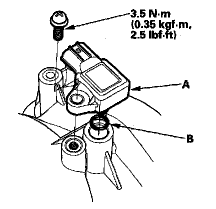 Install the sensor in the reverse order of removal with a new O-ring (B).