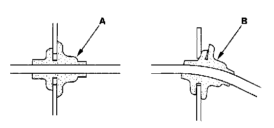 - Seat grommets in their grooves properly (A). Do not leave grommets distorted (B).