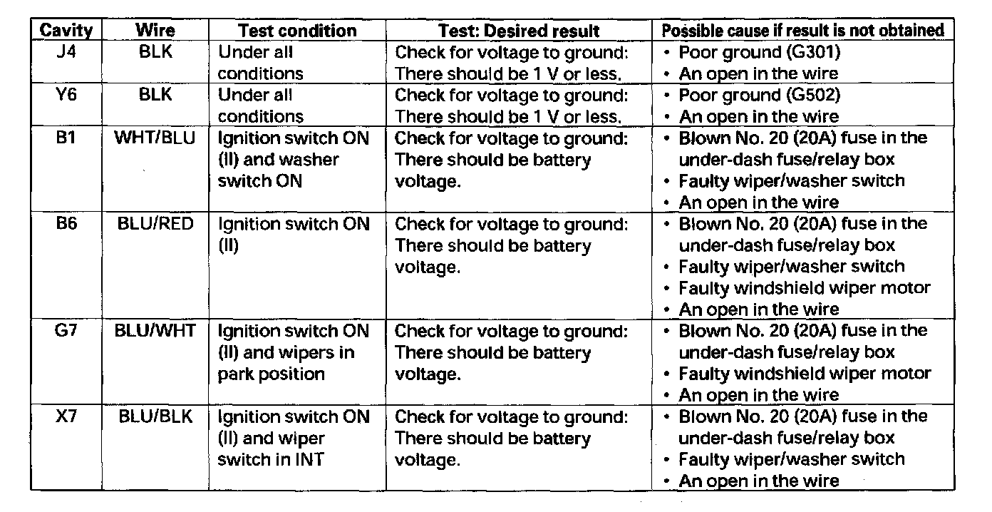 Windshield Washer Control Module: Testing and Inspection