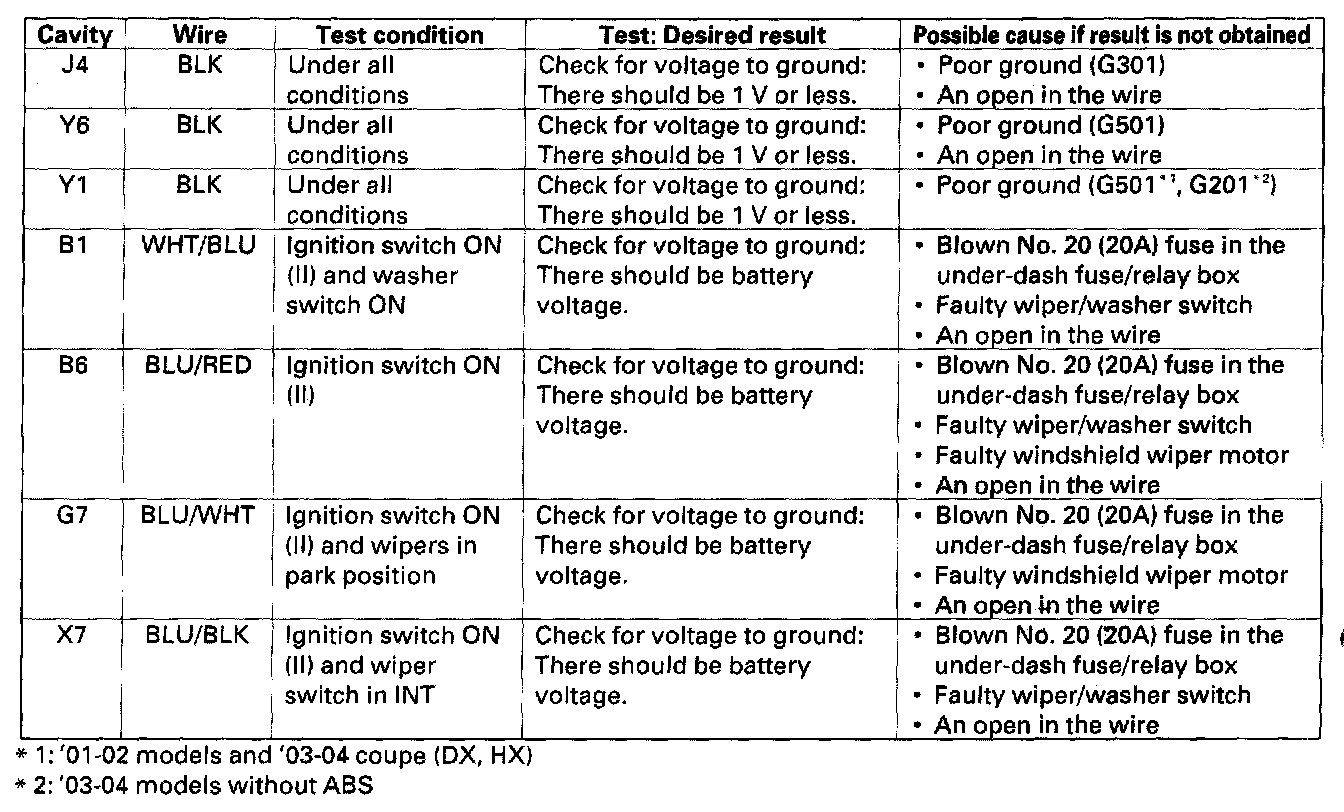 Wiper Control Module: Testing and Inspection