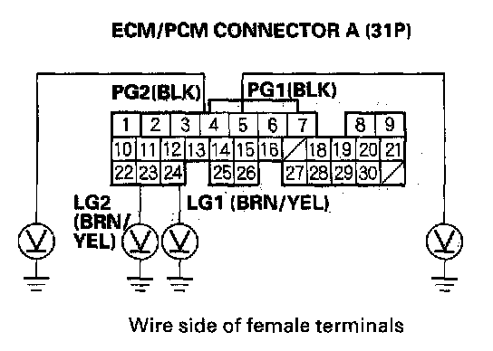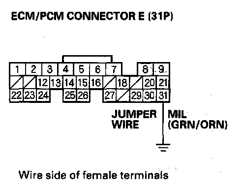12. Connect ECM/PCM connector terminal E31 to body ground with a jumper wire.