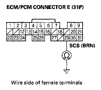 25. Check for continuity between ECM/PCM connector terminal E9 and body ground.