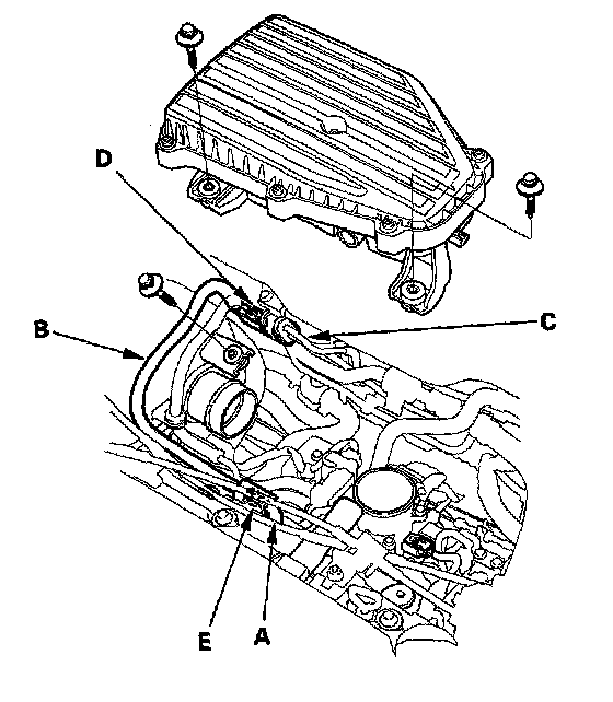 Fuel Line/Quick-Connect Fitting PrecautionThe fuel line/quick-connect fittings connect the fuel rail (A) to fuel feed line (B), the fuel feed line (B) to the fuel pipe (C), and the fuel line (D) to the fuel tank unit (E). When removing or installing the fuel feed hose, fuel tank unit or fuel tank, it is necessary to disconnect or connect the quick-connect fittings.