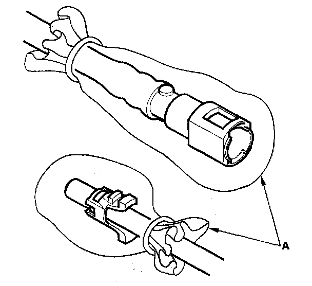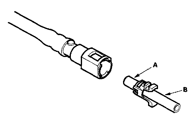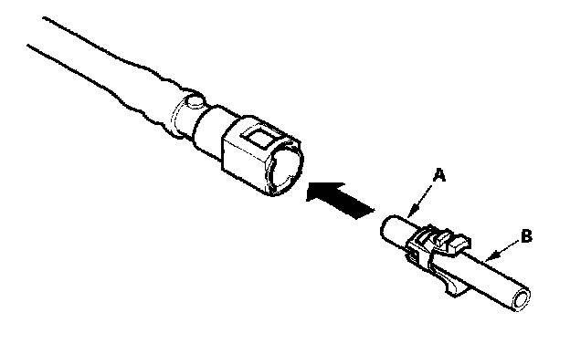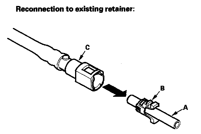 2. Insert a new retainer (A) into the connector (B) if the retainer is damaged, or after: